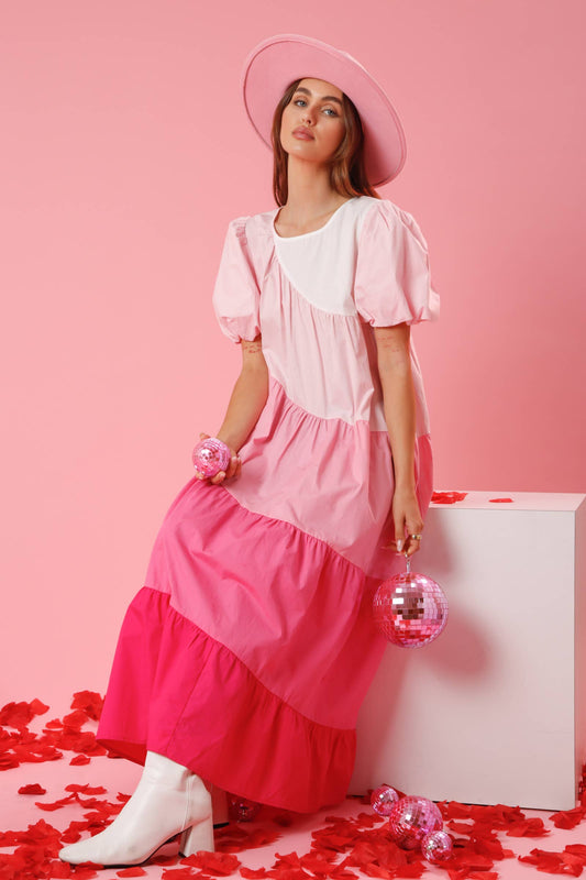 Asymmetrical Color Block Poplin Maxi Dress
