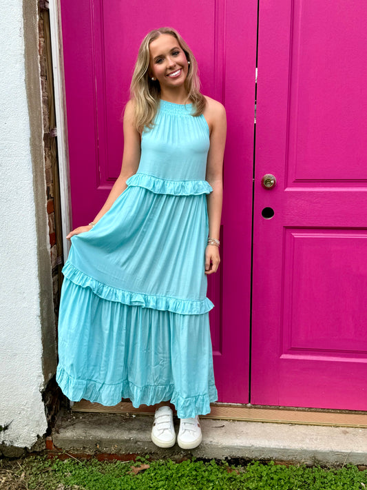 Ruffled Sleeveless Tiered Maxi Dress with Pockets